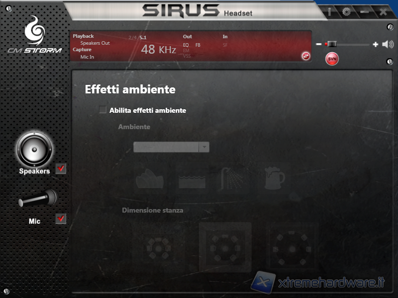 Sono presenti anche altre impostazioni particolari tra cui segnaliamo il commutatore 7.1 virtuale e gli effetti ambiente per le cuffie e la funzione Xear singFX per il microfono, per alterare con effetti speciali il segnale in ingresso.