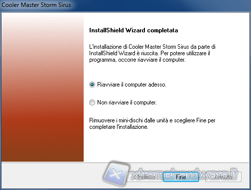 Una volta inserito il CD e avviato il file Setup.exe, l'installazione guidata provvederà all'installazione del software che sarà utilizzabile solo dopo il riavvio del sistema.