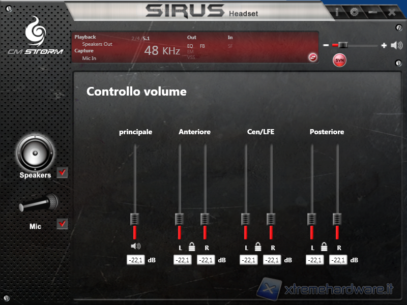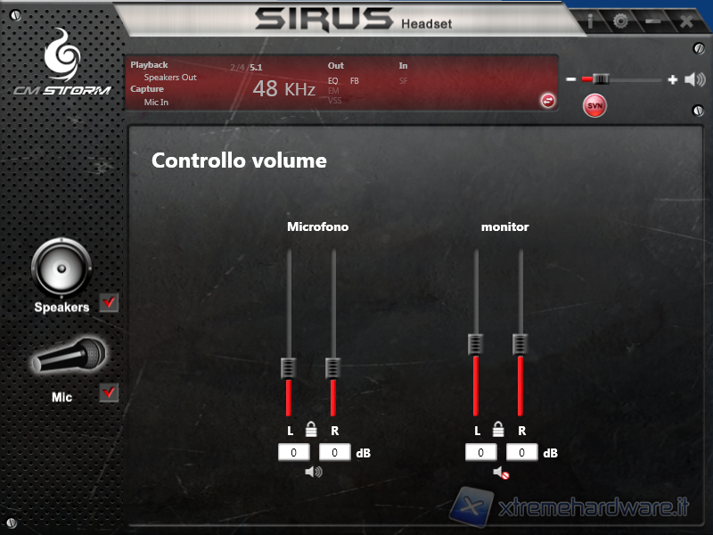 Nel CD presente nella confezione è contenuto Sirus Audio Center, una semplice ma potente suite che permette di regolare i parametri del microfono e delle cuffie.